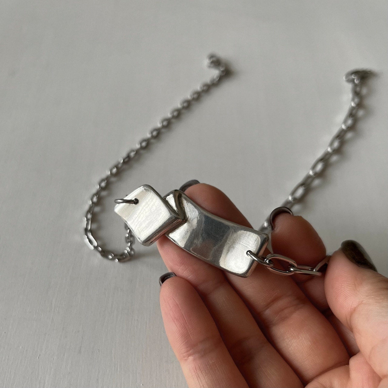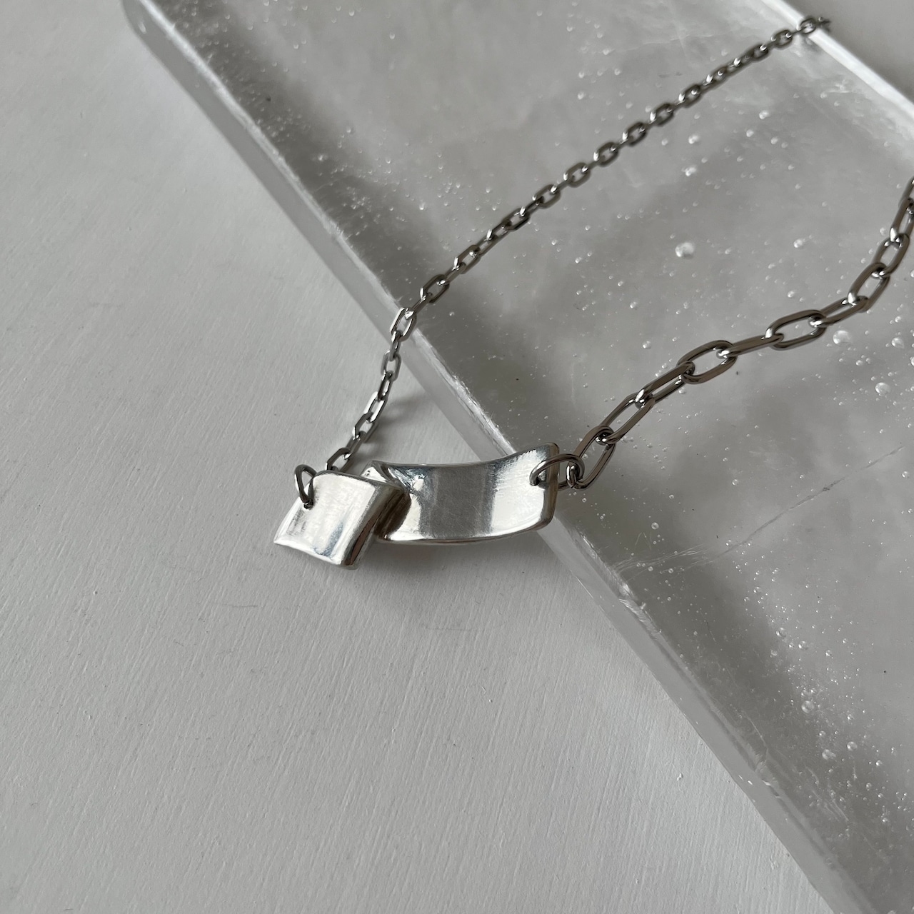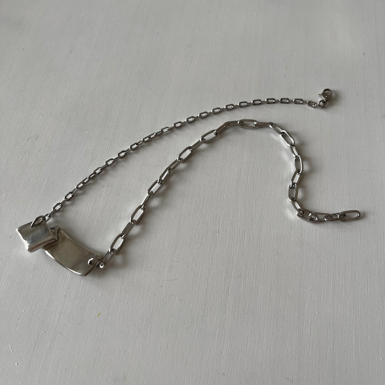 ステンレスチェーンは左右異なるデザインを使用しています。