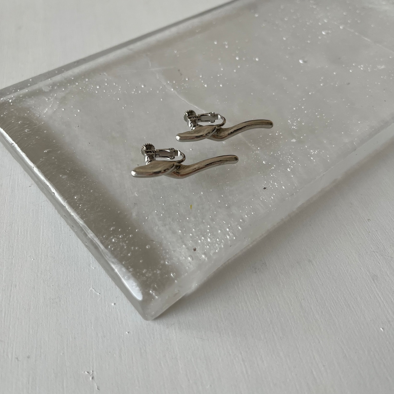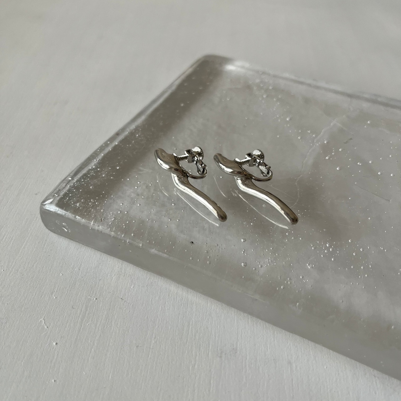 細長い曲線が特徴的な艶のある錫のイヤリングです。