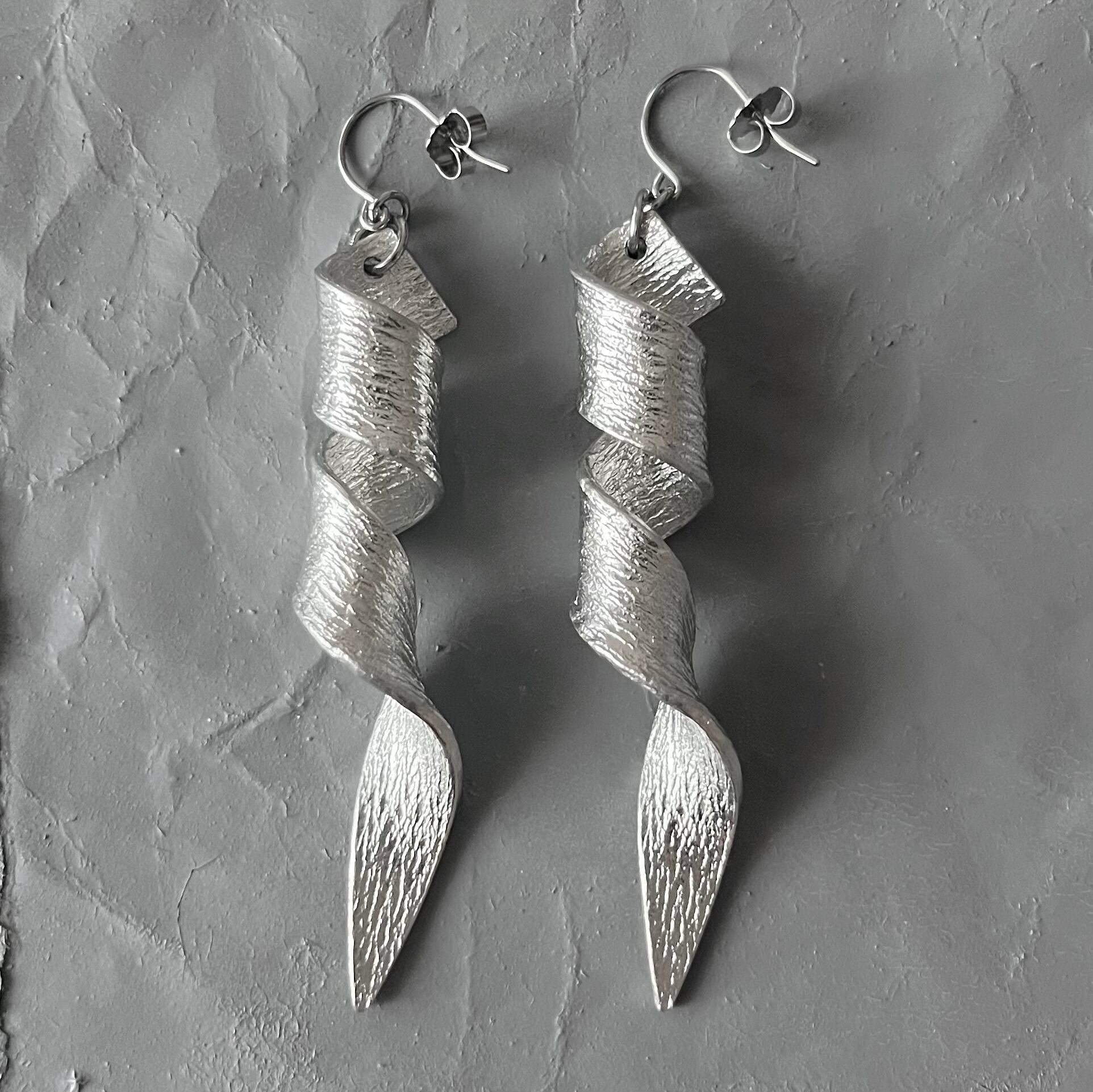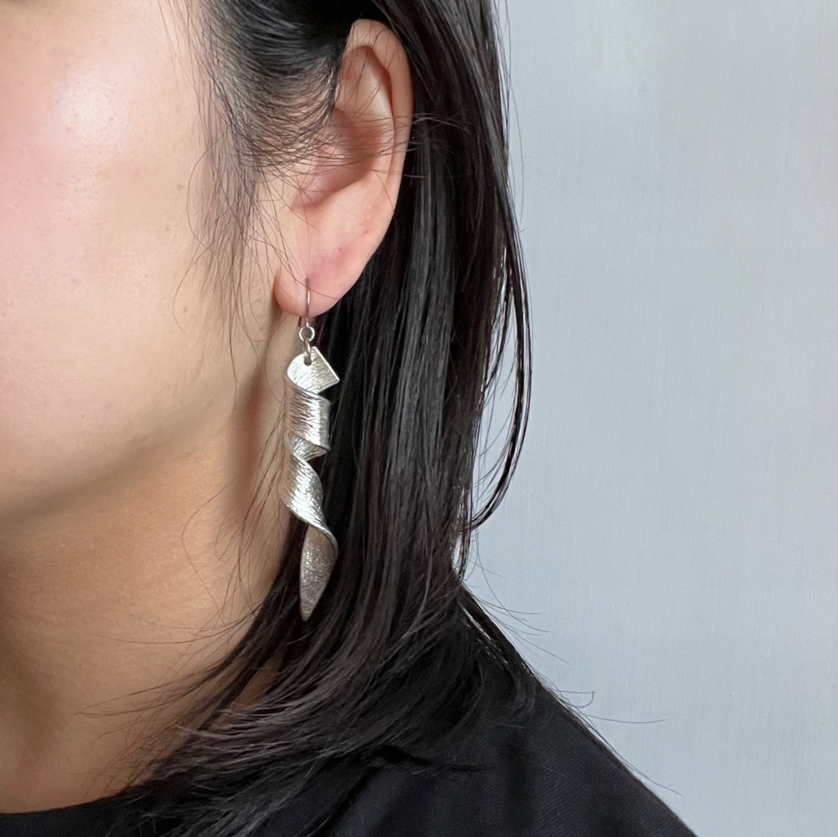 葉脈の様な細かな筋模様を施した錫のピアスです。