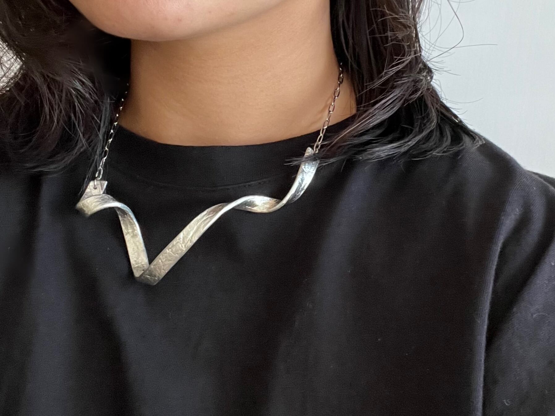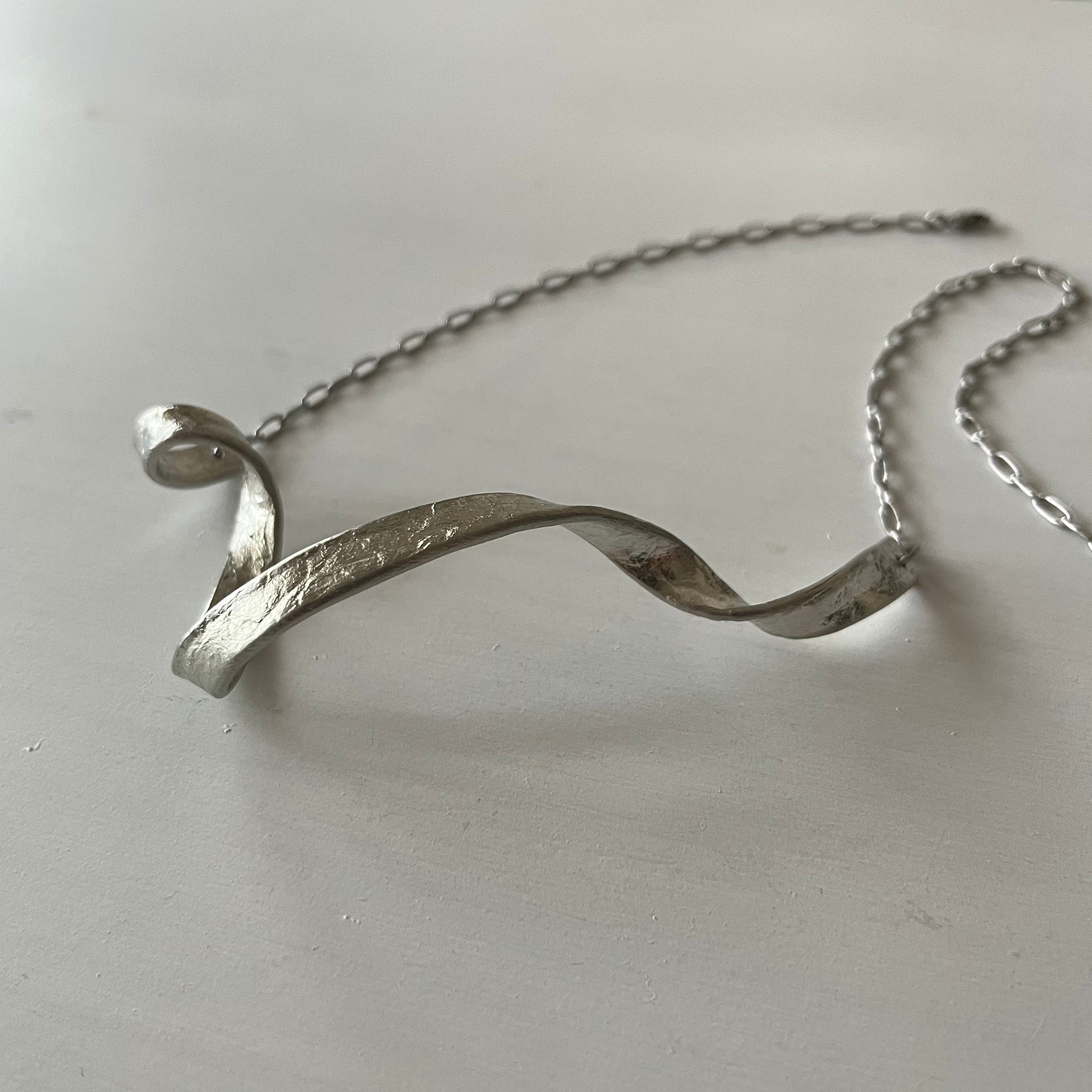 トップは和紙のような表情の細い錫を、アシンメトリーにねじり立体的に造形しています。